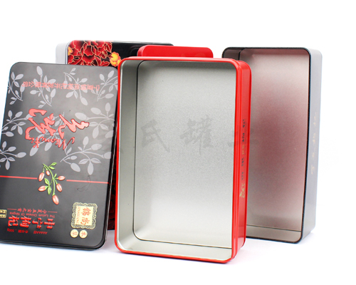 產品,其鐵盒結構為三片罐(蓋、身,底兩三部分組成)。蓋子為外卷線蓋設計,罐身有飛邊打磨處理,預彎內線頸口,與縮口蓋能緊緊結合,保證鐵罐內部空間的密封性。此款馬口鐵枸杞盒的材質為馬口鐵料制成,因其的金屬延展性能,使得鐵盒能在短時間內進行沖壓成型,是制作效率高的枸杞鐵盒產品之一。
