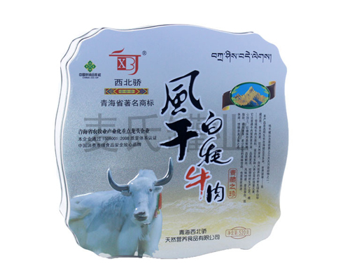 此款精品藏式牦牛肉鐵盒所采用的基材為國產一級0.23mm的鍍錫馬口鐵制成,為鍍錫馬口鐵是目前主流的金屬包裝材質,而客戶還可選擇磨砂鐵進行制作,而所生產的鐵料成本也會提高,但磨砂鐵制作出來的鐵罐更為精美。