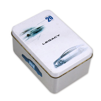 產品簡介:汽車電源包裝鐵盒,長方形結構設計,經典又使用。鐵盒為天地外卷線蓋結構,底為外卷線鑼底。鐵盒能包裝各種電子產品,如:手機電源、移動電源等。鐵盒選用國產0.23mm馬口鐵制成,表面外過白油,四色印刷工藝;內外過透明油。