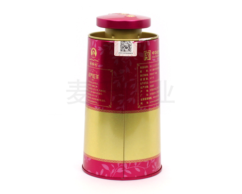 ,外觀為創意的異形設計,外邊輪廓為圓錐形態,在原有的圓形馬口鐵茶葉罐方式上得到了新的突破。茶葉鐵罐為內卷線內塞蓋,底部為鑼底,密封性高,關于形狀設計,客戶如想定制自己想要的形狀效果,可開模制作,或在現有模具上加以調整改模制作,目的是為了讓客戶能隨時制作出個性化定制鐵盒的服務。